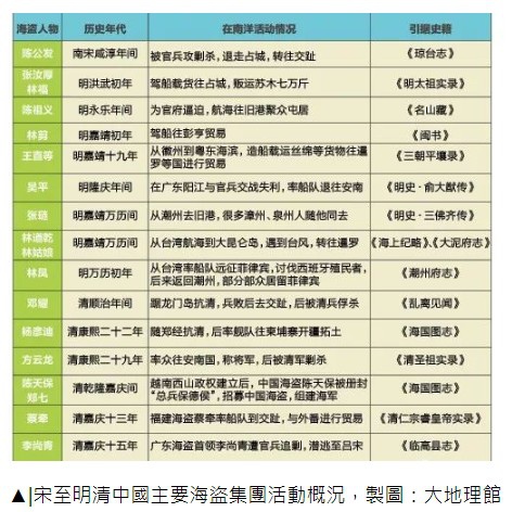 ▲|宋至明清中國主要海盜集團活動概況,製圖:大地理館