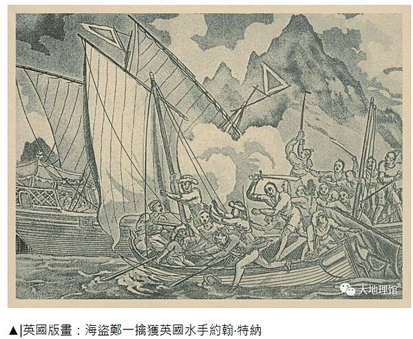 ▲|英國版畫:海盜鄭一擒獲英國水手約翰·特納