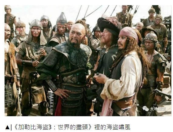 玄幻海盜大片中出現華人,並不算突兀,在中世紀與航海大發現前夕,馳騁在東西洋的中國海盜並不罕見。