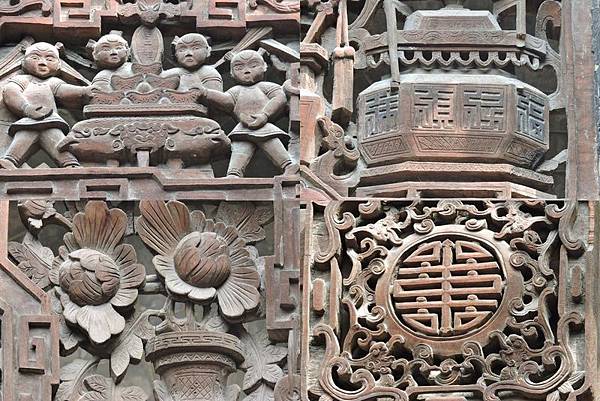 ▲渠家大院的磚雕,磚雕系在青磚上雕出形式各異的圖案。