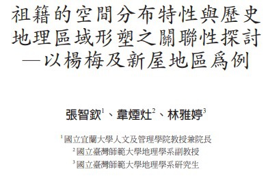 祖籍的空間分布特性與歷史地理區域形塑之關聯性探討—以楊梅及新屋地區為例