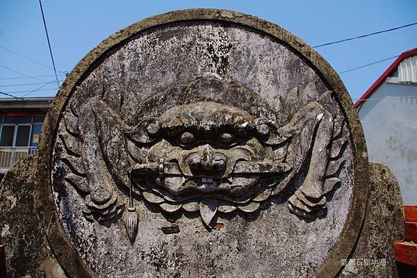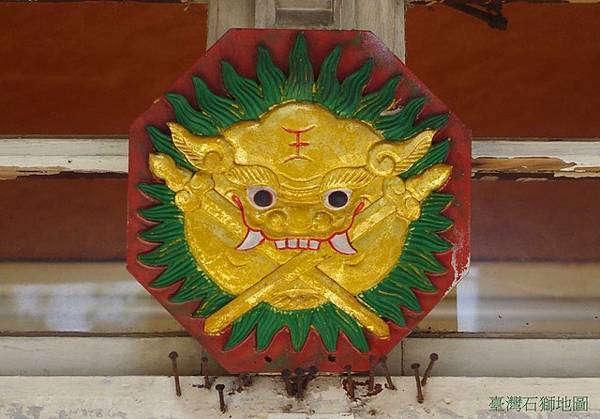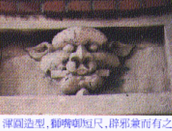 鎮厭凶煞,相提並論有三,門前立石敢當刻石、門楣懸掛繪太極八卦的圓木即吞口