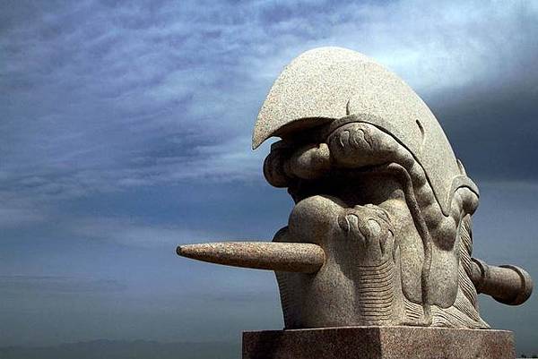 爢撰註(bā xià)(經常被誤寫作"蚣蝮(gōng fù)"),是中國古代漢族神話傳說是龍生的九子之一。 形似魚非魚,好水,又名避水獸,沒人說得清它的樣子。 頭部有點像龍,不過比龍頭扁平些,更接近於獸類,有點獅子相,頭頂有一對犄角。 爢卻又強調性善好水,又稱吸水獸,會調節水量,可使河水"少能載船,多不淹禾",保佑一方平安,倍受百姓崇敬。 以此靈異之物鎮於橋頂兩側,面向滔滔河水,寓示大橋會永避水害,長存永安。
