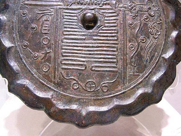 鏡子具有攘邪祈福的特殊功用,劍則具有辟邪的功能;威嚴的虎為百獸之長,它的威猛和傳說中降服鬼物的能力,使得它也成為屬陽的神獸,常與龍一起出現,'云從 龍,風從虎'成為降服鬼物的最佳拍檔;充滿神秘色彩的符箓也彰顯著辟邪的意義,因此我以為此鏡為道教盛行時期科儀活動中的重要禮器,它的內涵遠遠超過照面飾容的功能