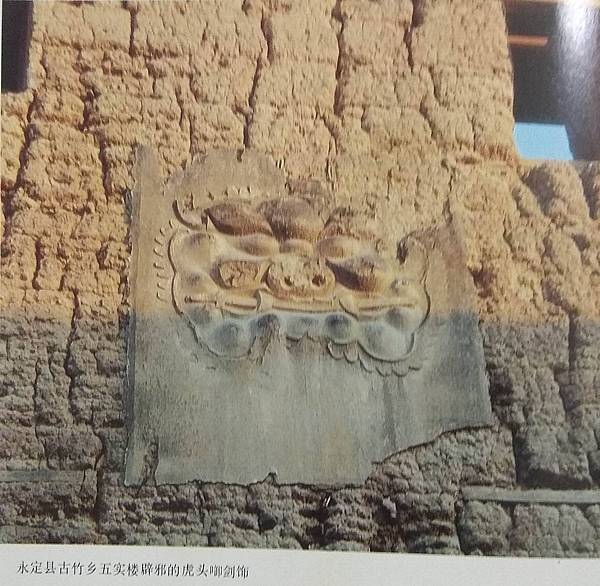 雲南昆明附近鄉村,人家建房,常於院門門頭上壘一吞口,瓦