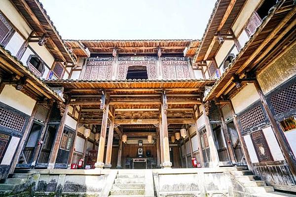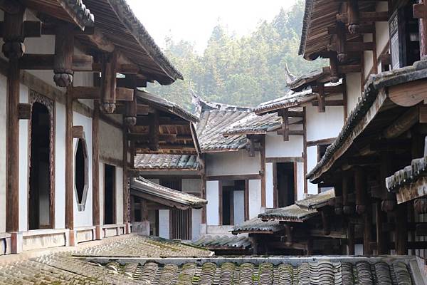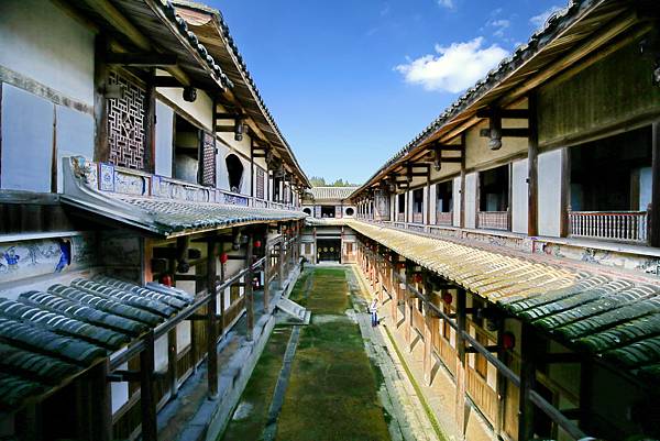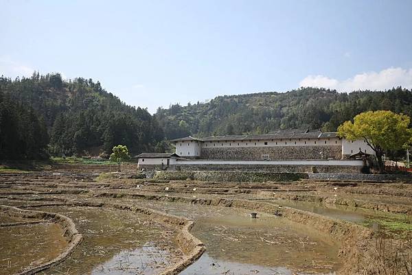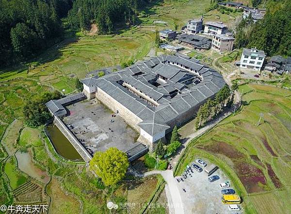 整座城堡占地面積超過一萬多平方米,實際使用面積也超過6000多平方米,是福建省保存最完好的古代夯土建築之一。田陌縱橫,青山環繞,從航拍的圖片上來看,這是一座結構緊密外牆堅固的城堡,而實際上,整座建築大多由木材建成,連綿的青瓦迴廊,串串的燈籠高掛,三面被梯田包圍,坐西朝東,背靠青山,仿佛是一副遺世的絕版水墨畫。