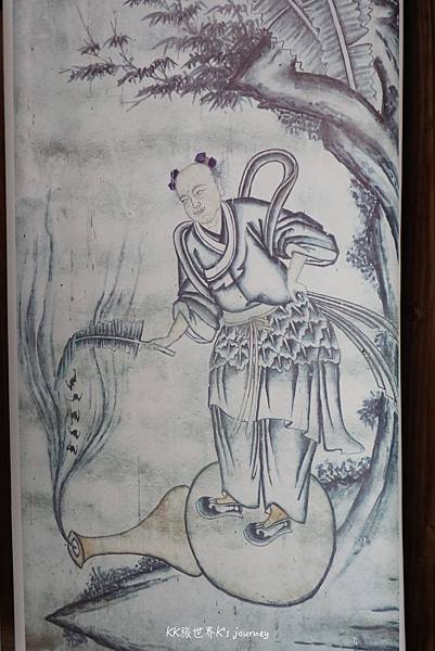 安貞堡還有另一個傳說,據說幾百年來房子已無人居住,卻不見蜘蛛網!導覽小姐帶我們上樓看兩幅壁畫。一幅是仙童拿著掃帚拂去蜘蛛,另一幅則是仙童手持芭蕉葉,將蝙蝠趕進大葫蘆裡,寓意「千蛛掃去,萬福招來」。可惜右邊壁畫前年被颱風吹落,現在只能看園區展示板。所以回到正題,安貞堡真的沒有蜘蛛網嗎?
