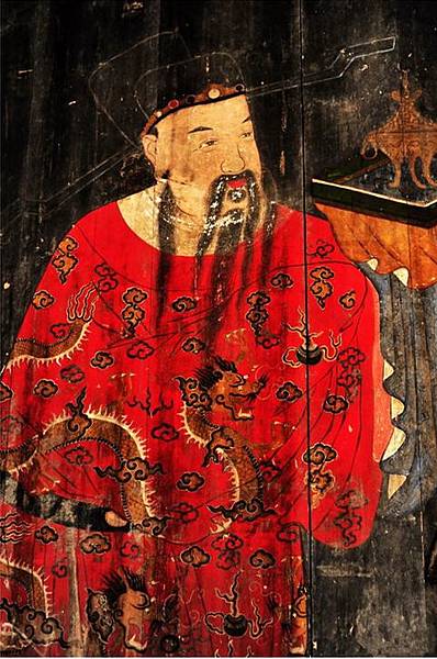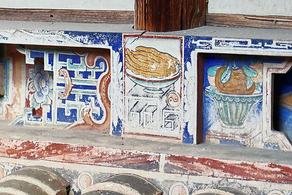窗櫺下的壁畫,像不像是油條配杏仁茶?如果仔細看,應該只是碗裡放了佛手瓜。