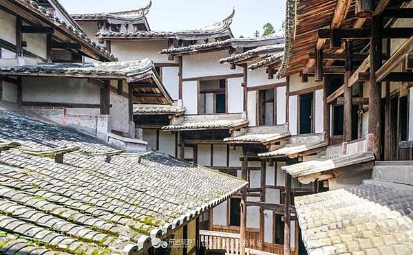 穿斗與抬梁式結構相結合,隨地勢逐次升高,遠眺其屋頂層層疊疊,錯落有致。城堡的木建築分為上下兩層,每層有內走廊。