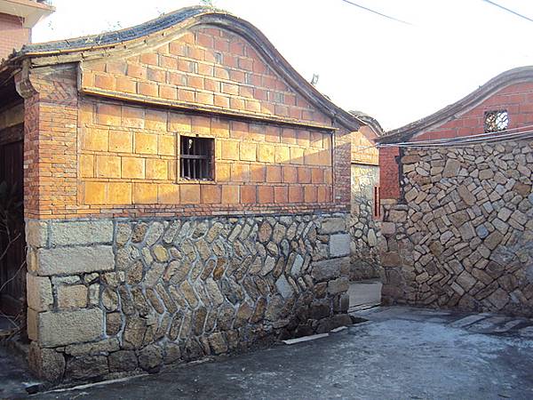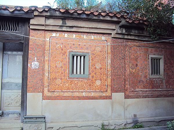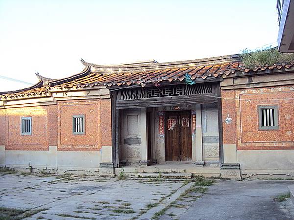 民居門前,有寬大石埕,周邊圍有三面矮牆,外牆紅、白、綠三色相間,充滿富貴氣息的同時,又頗有幾分文雅清幽的意境。