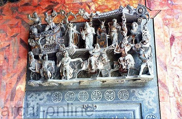 磚雕、漆雕、灰雕和輝綠岩、花崗岩石雕。採用透雕、浮雕和平雕手法,精雕細琢大量的珍禽異獸、花鳥遊魚、