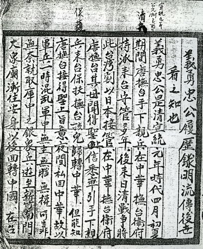 [2] 以上係參考黃秀政,《台灣割讓與乙未抗日運動》,(台灣台北,台灣商務印書館,1992年),頁163~165與頁262~263。