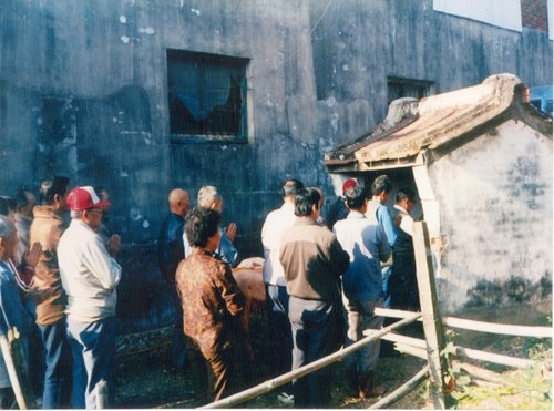 [12]《復興 慶壽嘗義勇忠公會》小冊子,無頁碼。另1999年12月徐勝華口述:目前會員一百三十人,會金八十萬元。每一入會者須繳交五千元入會費,往後每年冬至日祭拜河南公時,可領取豬肉一串及參與聚餐聯誼
