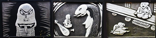 後來,帶著琵琶的座頭來到此地,遇上一名希望為她奏一曲的女子,細問之下女子坦述她因為某些原因而變成了一條大蛇,但身體日漸長大後便打算在建一個大湖居住,於是便提醒座頭離開以免被引起的洪水淹死。座頭心知村落即將大禍臨頭便通知村民,再利用蛇忌鐵的弱點與村民花了七日七夜把蛇殺死。