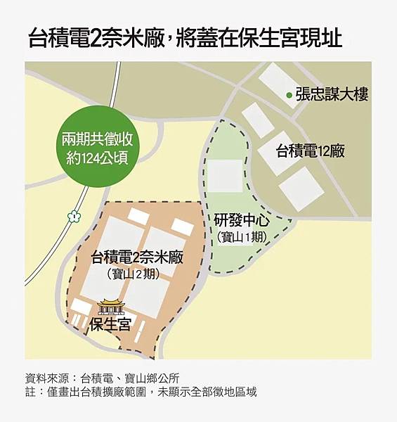 為了籌備台積電的2奈米計畫,竹科管理局正在規劃「新竹園區寶山用地第二期擴建計畫」,預計興建四座2奈米廠,迫使原先歷史悠久的客家村落必須遷村,祭拜保生大帝的重要信仰中心「保生宮」也必須遷移。