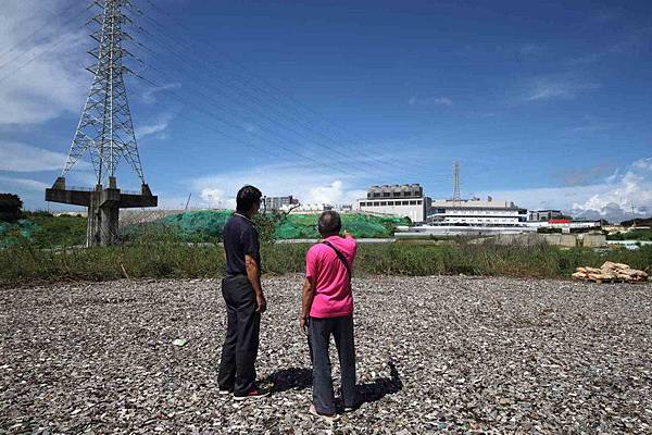 科管局大徵地,涉及900多位地主與信仰中心。保生宮副主委楊火炎(左)和村民看著村裡土地,即將變晶圓廠區。圖片來源:王建棟攝