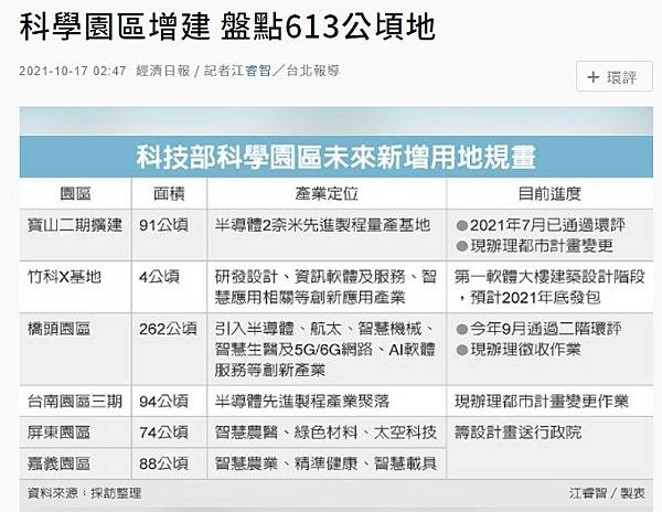 科學園區增建 盤點613公頃地 | 財經焦點 | 產經 | 聯合新聞網 https://bit.ly/3niNTir