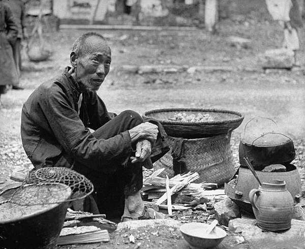 四川饑荒中煮樹葉充飢的一家。1937年陳功燾在《四川饑荒與糧食統制》一文中說:「災民全靠草皮樹根以裹飢腹,今年樹皮已剝盡,草也吃完,就想到死人身上去。聽說死屍的肉每斤賣五百文,活肉賣每斤一千二百文。」