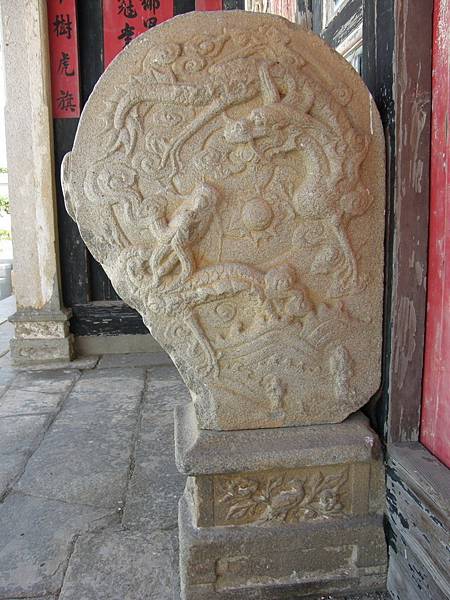 家廟前的蟠龍石鼓為四爪蟠龍,刻意有別於五爪的真龍天子。