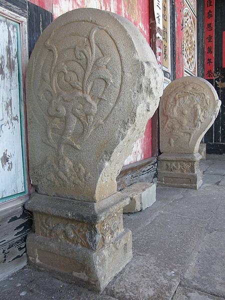 廟前內側刻蟠龍搶珠的石鼓,外側刻花草。