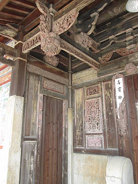 原本書寫「祖為忠臣孝子 孫亦明宦鄉賢」門聯的柱子上如今貼上了「分虎符屏籓三省 仗鈇鉞威震二京」說明青嶼張家先祖的功勳不只在科舉亦在武績。