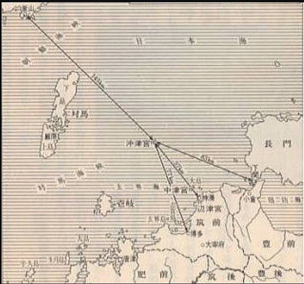 釜山・宗像間の海路は「海北道中」と呼ばれ、これを守護するのが神社の最大の勤めであった。