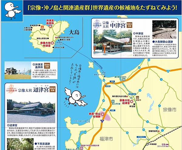 2009年(平成21年),作為「宗像・沖之島和關連遺産群」的構成遺産之一,在世界遺産暫定名單追加掲載。2017年正式被列入。