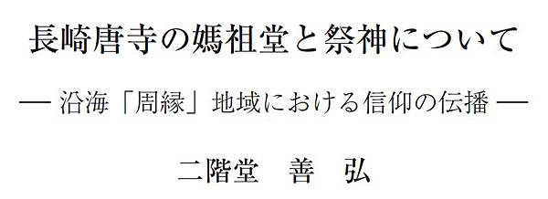 華人移居日本與媽祖信仰在日本的傳播。
