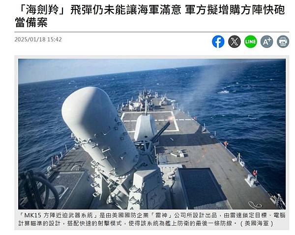 「海劍羚」飛彈仍未能讓海軍滿意 軍方擬增購方陣快砲當備案 - 自由軍武頻道