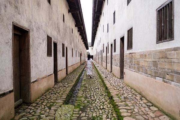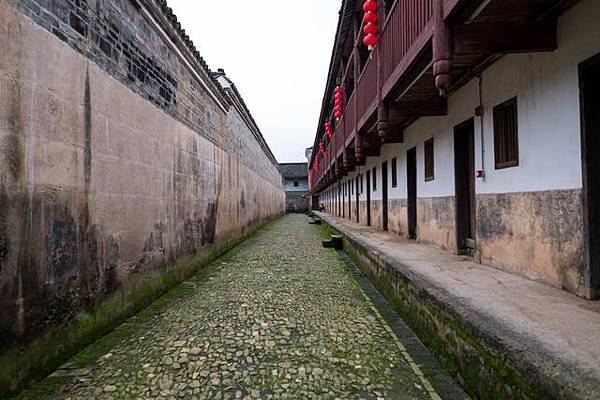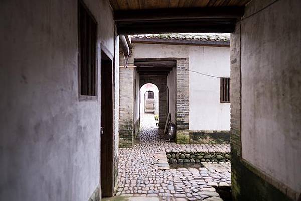 走在圍屋內部,給人一種四通八達的感覺,一處處走廊相互連接相通,每隔一段又設置有天井,以增加內部同光,走廊之上的小道皆為卵石鋪砌而成,古色古香又彰顯當地建築特色。