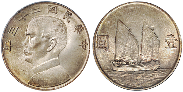 Sold Lot 38594925 中華民國二十三年 壹圓 孫中山 帆船銀幣::老酒林珍藏交流中心 - 龍銀古幣收購 | 中國日本龍銀收購、舊紙鈔收購、古幣收購、銀器收購