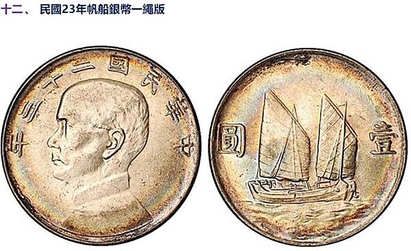 帆船幣發行的年份有22、23年,其中民國22年的較少。