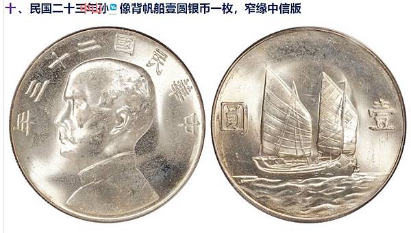中華民國帆船幣是中國近現代機制幣中的十大名聲品之一,它之所以名聲大是因為他的歷史性和珍稀性表決的。據有關資料紹介,孫中山頭像的雙帆幣,多由上海中央造幣廠所製造完成。