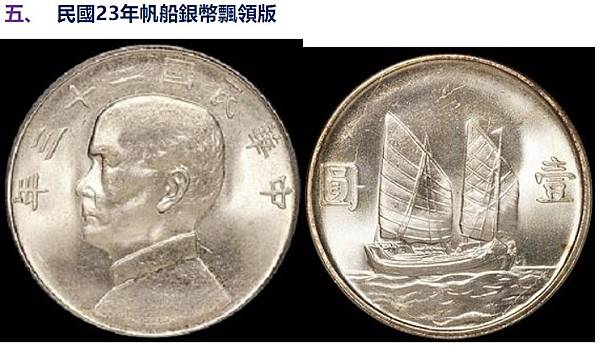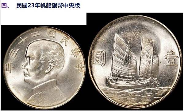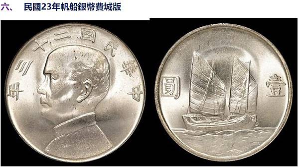民國21年的【三鳥幣】被緊急下架之後,中央造幣廠趕緊用三鳥幣的模具做修改,將【三鳥】、【太陽】從構圖中拿掉,於民國22年起鑄造俗稱的【帆船】幣。