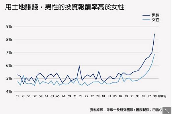 朱敬一跟研究團隊進一步發現,只有當土地來自遺產贈與時,男女之間的投資報酬率才會有差別。換言之,長輩會把比較賺錢的土地留給男生,而非女生。