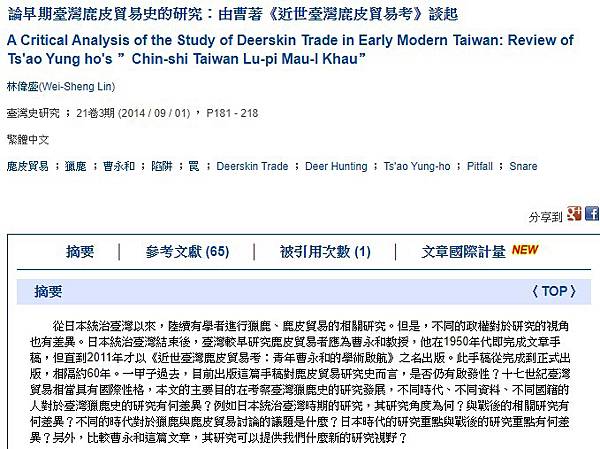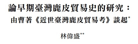 Airiti Library華藝線上圖書館_論早期臺灣鹿皮貿易史的研究:由曹著《近世臺灣鹿皮貿易考》談起