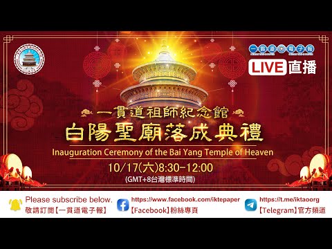 一貫道總會榮譽理事長韓萬年則表示,一貫道在台灣至今超過70年,歷經前輩犧牲奉獻,以及湯文萬總裁的發心,讓白陽聖廟落成,將成為全球一貫道朝聖的地點,並說一貫道的道場分布台灣、全球各地,但白陽聖廟的意義不同,因此特別舉辦落成典禮,宣告這裡是一貫道正式動員開始的基地,希望大家繼續護持、幫助。