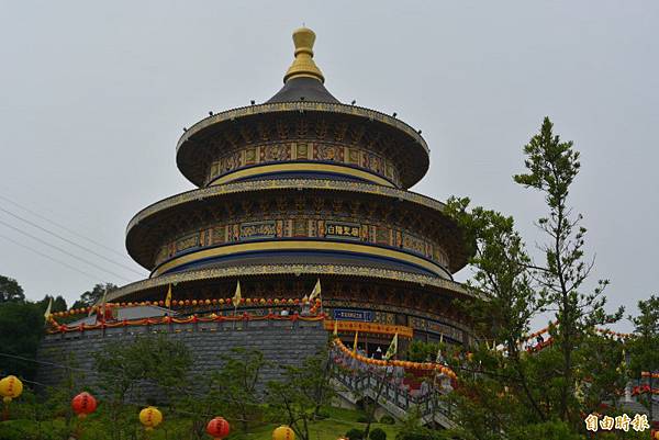 「一貫道祖師紀念館白陽聖廟」今天舉行落成典禮,整棟建築樓高54米超越北京天壇,將申請金氏世界紀錄認證。(記者陳建志攝)