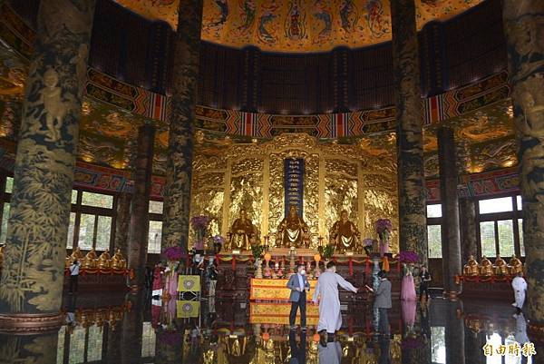 「一貫道祖師紀念館白陽聖廟」今天落成,建築內外全部以銅手工打造,相當宏偉莊嚴。(記者陳建志攝)
