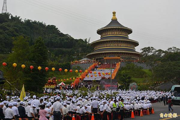 「一貫道祖師紀念館白陽聖廟」今天舉行落成典禮,吸引上萬信徒道場觀禮。(記者陳建志攝)