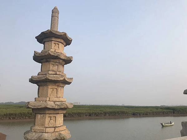 踏上石橋,直抵中亭。 橋的右側,有圓錐形石塔,直入高雲。 塔基前有"南無阿彌陀佛"碑偈,豎刻正書。 碑石風化斑駁,是建橋時立以祀佛的,可見建橋時佛教己經有相當的影響。