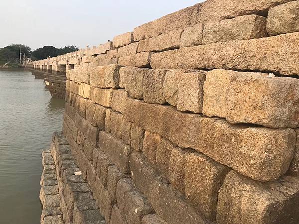亟往視,梁果沉海,折不可續。 而橋北石梁塌低於南四尺奇,潮至輒沒,人不能行,淵址剝落十者有三四耳。 大抵歲久,水道更移,向由中橋深坎酾水,而後沙平水溢,穿溪蕩浦,而北風濤復噬啮之故,今壞更甚也。 余是以謀於觀察姚公,採石修之,南北並舉,於橋北尤所重雲。 [3]