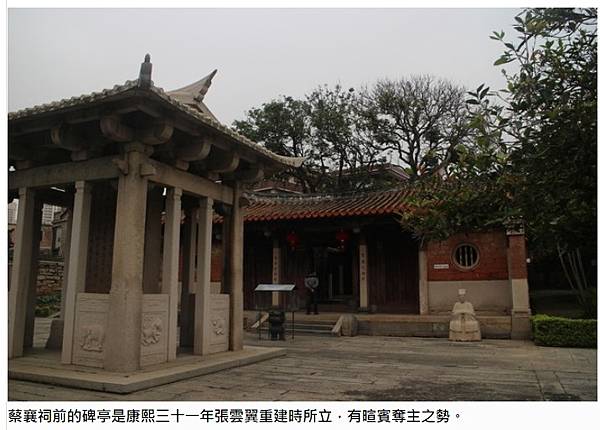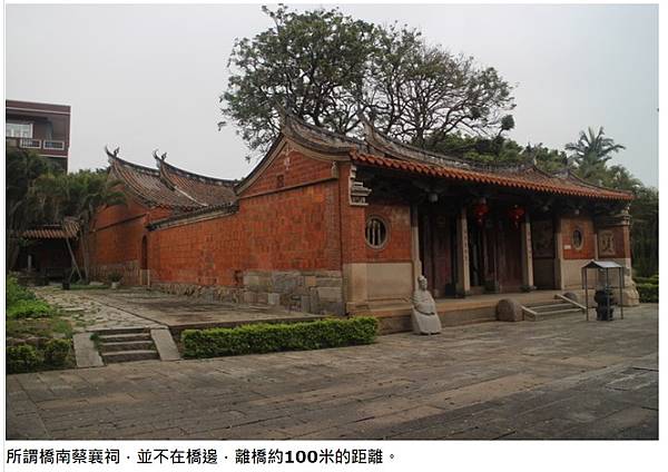 蔡忠惠公祠內柱聯「架橋天地老,留筆鬼神驚」為晚清探花郎黃貽楫所題