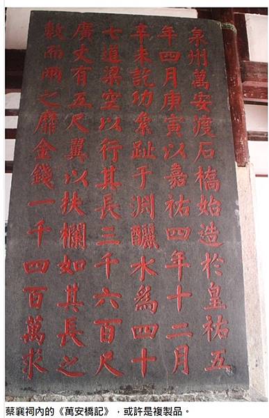 洛陽橋上的碑刻多有提及蔡襄造橋之功