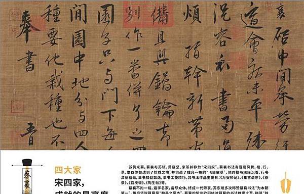 蔡京書法風格的蛻變,也意味著其藝術水準的昇華。舊式筆法加上新派鋒芒,相當於現在那些復古結合新潮、穿出跨世代混搭風的超級潮男,簡直潮到出水。當時提倡「尚意」運動的書法家主要有四人,也就是前面提到的「宋四家」:分別是天然的蘇軾、勁健的黃庭堅、縱逸的米芾,以及含蓄風雅的蔡京,他們的書法各具儀態,在在堪稱精品,四人也合稱「蘇黃米蔡」。