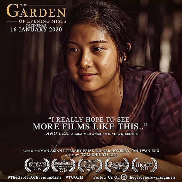 毫無疑問,《夕霧花園》絕對是本屆金馬獎最亮眼的電影之一,不僅入圍包括最佳劇情長片、導演、女主角、改編劇本等 9 項大獎,台灣導演林書宇也延續他前作《百日告別》學習在傷痛中成長,懂得珍惜自身擁有的主題,特別跑到馬來西亞,聯合英國編劇、日本與馬來西亞演員、印度攝影師跨國合作了一部關於當地歷史的愛情電影,便可看出林書宇想藉由《夕霧花園》這部預算較高、故事也較複雜的作品來汲取經驗,提升自身執導格局的嘗試和野心。