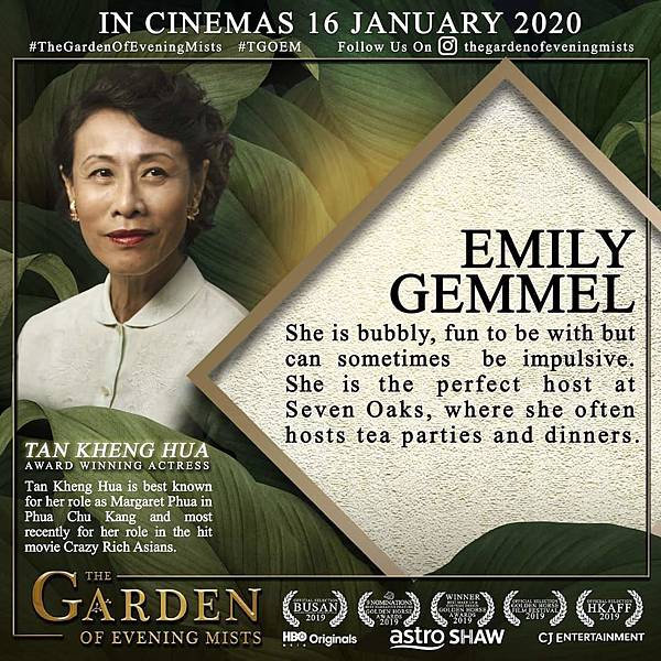 《夕霧花園》的題材宏大,既涉二戰、解殖,又涉文化、人情,單談故事已毫不簡單,電影團隊跨越亞歐,由三間製作公司攜手炮製,編導、演員來自大中華、東南亞、日本、英國等地,可見本片野心不小,在金馬獎上更獲最佳劇情長片、最佳導演、最佳女主角、最佳改編劇本,以及多個技術獎項提名。稍感可惜的是,電影未將此史詩式故事發揮極致,在言志與言情兩方面不夠平衡,恰如頒獎禮上鎩羽而歸,僅奪最佳造型設計一獎,令人惋惜不已。