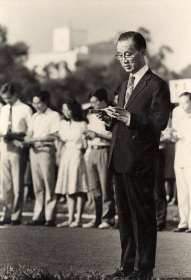 圖為虞校長於民國七十年十月八日參加臺大升旗典禮的照片,為虞校長最喜愛的照片之一,錄自《我的圓舞曲:虞兆中校長口述歷史》一書。