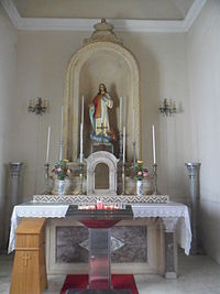 教堂內祭壇室建於1875年的巴洛克式聖壇,採用斷山花和雙柱的形式