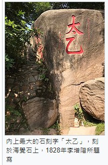 內上最大的石刻字「太乙」,刻於海覺石上,1828年李增階所題寫